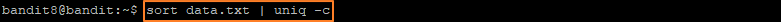 uniq는 중복된 내용에 관련된 명령어이다. 전체적으로 분산되어 있는 중복된 내용은 찾아내지 못하기 때문에 정렬하여 순차적으로 만든 뒤에 이 명령어를 적용해야 한다. 정렬되지 않은 상태로 uniq 명령에 옵션을 적용해도 이상한 결과가 리턴되기 때문에 반드시 정렬을 한 후에 사용해준다.